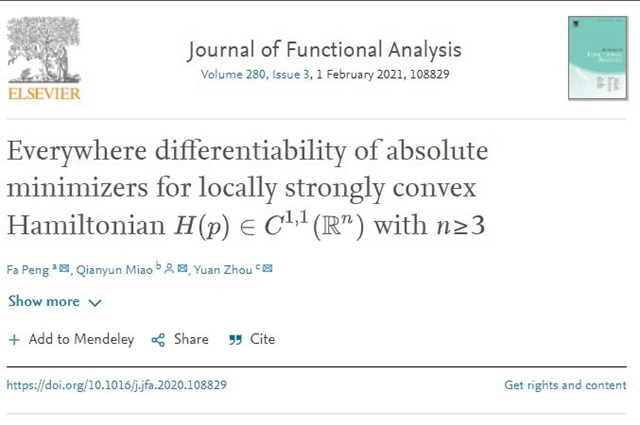 日前,ob真人竞猜数学与统计学院苗倩云副研究员及其合作者在分析类顶级期...