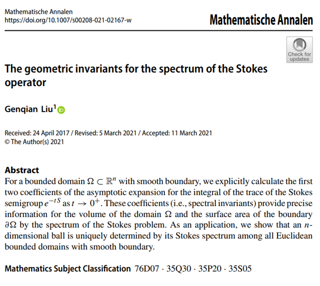 ob真人竞猜大学在Stokes流体研究方面取得...