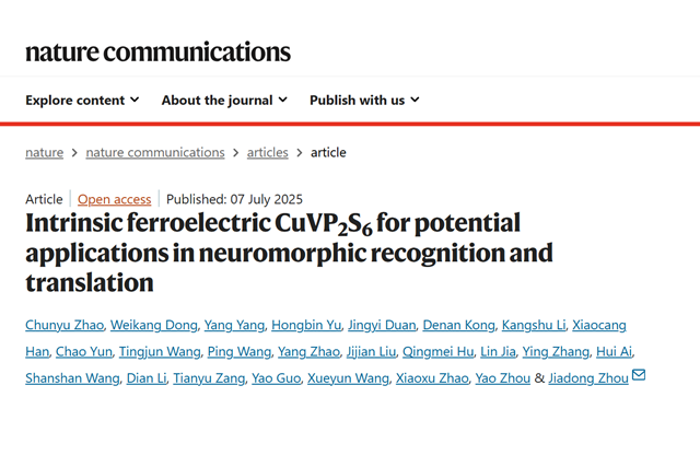 近日,ob真人物理学院周家东教授团队在二维铁电材料CuVP2S6合...