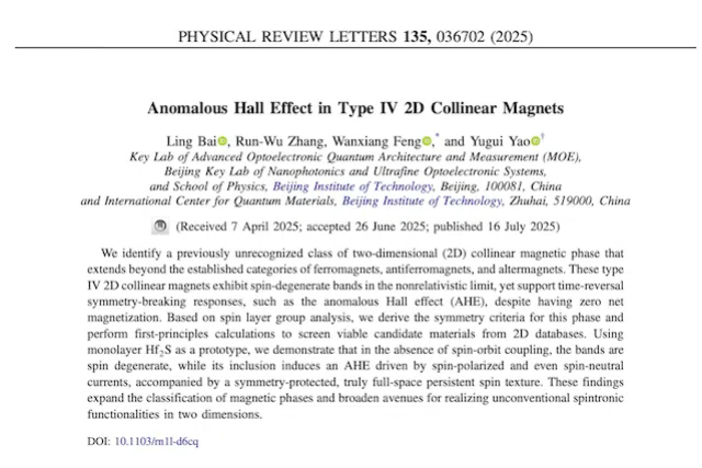 近日,ob真人物理学院冯万祥教授、姚裕贵教授团队在磁性材料及其反常...