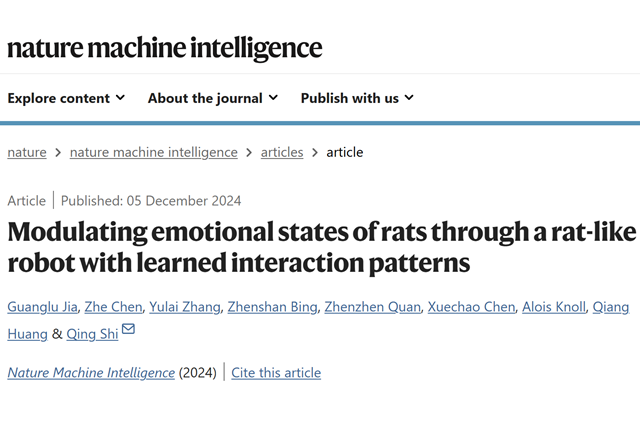 ob真人机电学院石青教授团队在机器人-动物交互领域取得重要进展。 -