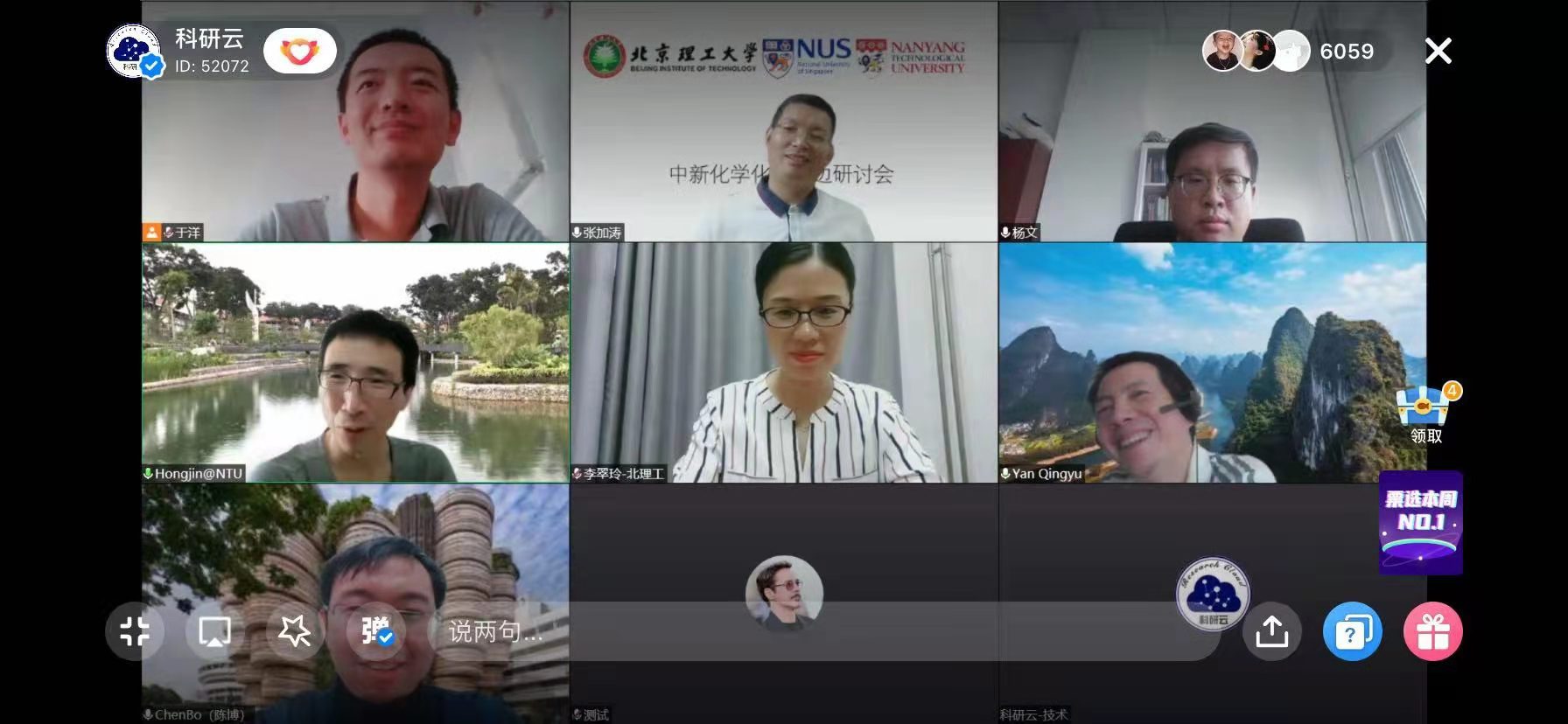 8月10日,由ob真人竞猜化学与化工学院主办的中新双边化学化工研讨会在线上举行。来自新加坡国立大学、新加坡南洋理工大学、ob真人竞猜的8位专家做报告,化学与化工学院及相关院系的80余名师生参加了会议。学术报告环节通过科研云等直播平台进行了直播,相关领域专业累计5.6万余人在线参与。
