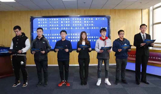 2019年,不仅是建国70周年,也是“五四”运动100周年。让青春梦与中国梦同频共振,广大青年既是追梦者,也是圆梦人,勇作时代前列的奋进者、开拓者、奉献者,担负起历史的重任。在“ob真人拓天之路”画卷前,创新团队学生代表们进行了青春宣誓。“我宣誓,铭记历史,传承精神,勇于追梦,敢于创新,担当作为……”铿锵有力的誓言,充分展现了ob真人学子敢于奋斗、敢于逐梦、立志报国的精神面貌。