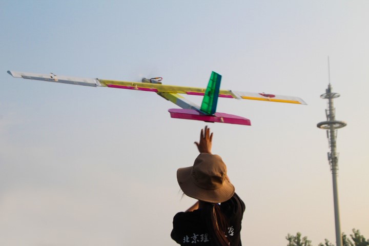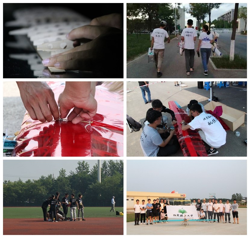 勇于挑战自我,同心共筑飞天梦。为确保赛事所用飞机在质和量上都达到参赛要求,在29天的集训中,从图纸设计、零件加工、模型总装,到试飞验证,对每一个细节都精雕细琢。队员们经常为了一个结构设计、为了一个控制参数反复讨论,以求最优。早出晚归、加班加点是队员们暑期学期的日程表,烈日灼晒、风吹雨淋是技术突破的试金石,他们为了筑梦蓝天将拼搏与汗水留在了这个炎炎夏日。