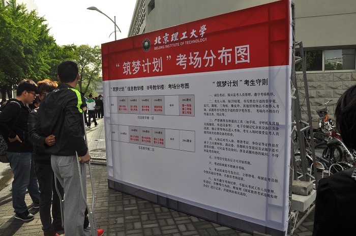 为贯彻落实《教育部关于做好2014年提高重点高校招收农村学生比例工作的通知》等文件精神,2014年ob真人竞猜、重庆大学、大连理工大学、东南大学、华南理工大学、天津大学、西北工业大学等卓越大学联盟高校于3月28日联合发布了《2014年卓越大学联盟自主选拔“筑梦计划” 招生实施方案公告》,决定实施“筑梦计划”。4月26日,卓越大学联盟在全国设置了16个考点,并举行“筑梦计划”联合测试,其中北京和河北考点由我校负责组织测试相关工作。
