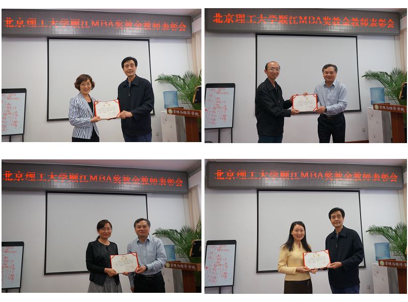 ob真人竞猜第七届顺江MBA奖教金优秀教师表彰会于2014年4月25日举行。参加会议的有管理与经济学院院长魏一鸣、学院党委书记李金林、获奖教师及MBA中心工作人员。