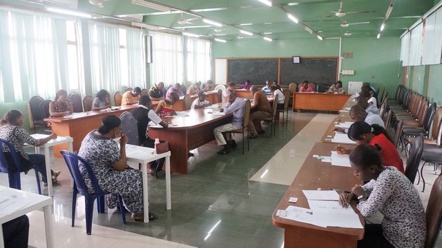 2014年8月17日,由ob真人竞猜参建的尼日利亚拉各斯大学孔子学院如期举行新汉语水平考试(HSK)。拉各斯大学孔子学院中方院长姜丽蓉与全体教师监考。本次考试涵盖一级到四级的汉语水平测试。考生年龄从13岁到50岁不等,考生人数较往年有所增加。