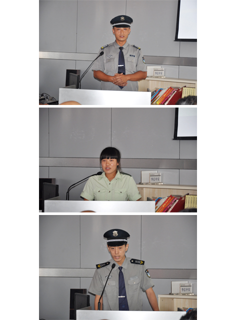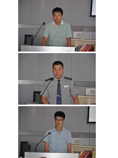 随后,由获得先锋模范称号的三名保安员详细汇报自己在工作中、生活中总结的经验和不足,以及个人感受和体会。他们分别表达了自己对学校的情感,感谢保卫处每个学期精心准备的评选及实践活动使得自己受益匪浅,感谢思想疏导师对保安员的培养和教诲,使他们在个人成长过程中汲取了充足的养分,在今后的日子里,一定会继续努力工作和学习,爱岗敬业,真情奉献。
