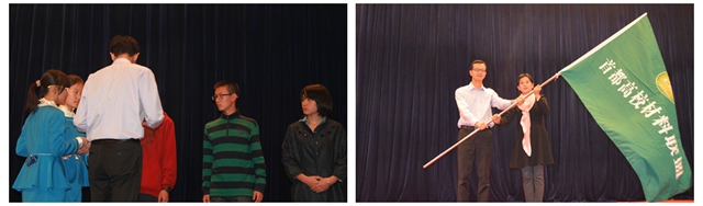 闭幕式上还为在本次文化节中有突出表现的各高校材子材女们颁发获奖证书,以表彰他们在文化节各项活动中表现出来的不屈不挠、努力奋斗的精神。作为下届材料文化节的承办方,我院党委副书记、副院长张舰月从北京航空航天大学材料学院党委副书记张江手中郑重接下首都高校联盟旗帜。