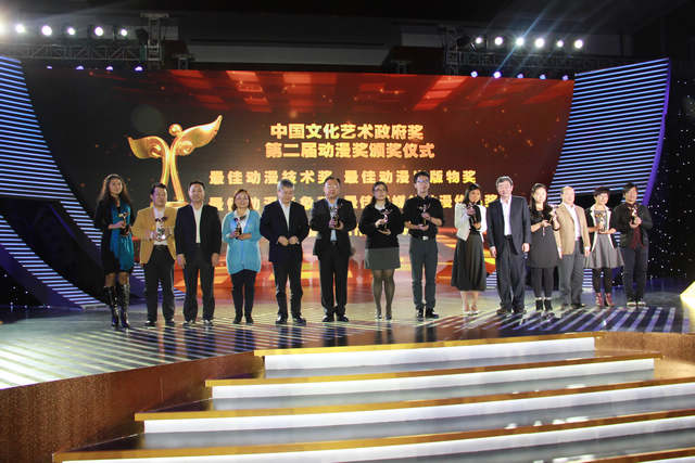 中国文化艺术政府奖动漫奖是经中央批准,由文化部在中国文化艺术政府奖中增设的国家级奖项,与文华奖、群星奖并列,是我国动漫产业的政府奖、最高奖,每3年评选一次,每次设立30个奖项。第二届动漫奖的申报工作于今年3月底启动,共收到34个省、自治区、直辖市和计划单列市的申报材料630份,经材料审查、初评评审、终评评审,最终评选出12个类别的30个获奖项目和80个入围项目。