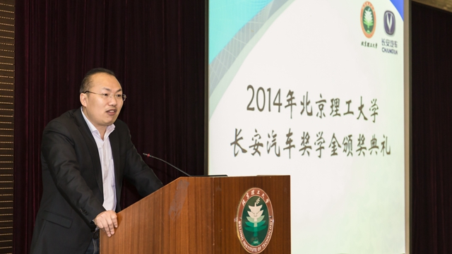在颁奖仪式的最后,长安汽车工程研究总院副院长兼北京研究院院长吴礼军进行了讲话,介绍了长安汽车的发展历史和企业发展的现状,同时表达了对校方培养汽车行业人才的肯定。吴院长用诙谐幽默的语言,获得了全场同学的好评。