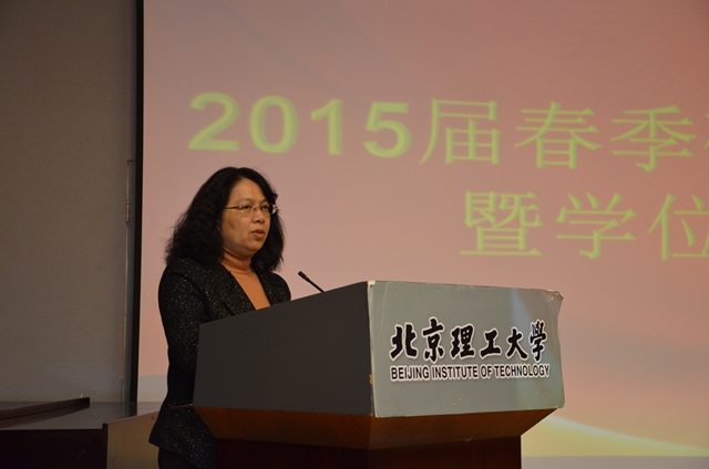 自动化学院院长兼党委书记王军政教授代表学院在典礼上致词:首先,向圆满完成学业的8名博士和113名硕士顺利毕业表示热烈祝贺。其次,回顾了近年来自动化学院在师生共同勤勉努力下取得的成绩,对毕业研究生们为学科发展做出的成绩表示感谢。接着,向毕业研究生提出了几点期望:(1)做一个理想远大,境界高远的人;(2)做一个包容宽厚、善于合作的人;(3)做一个脚踏实地、知行合一的人;(4)做一个不断学习,勇于创新的人。最后,王院长代表自动化学院祝同学们远举高飞,博学笃行,事业有成,大展宏图,拥有精彩人生。
