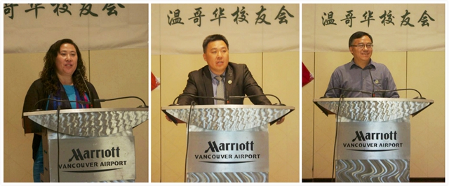 温哥华大专院校校友会会长李卉、多伦多校友会会长王勇以及机械与车辆学院78级校友刘英敏代表到会校友分别致辞,祝贺温哥华校友会的成立,并追忆了自己在母校求学的时光,建议经常与其他地方校友分会联络,发挥各自优势,为地方、母校及校友发展做贡献。