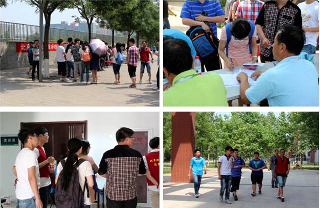 北京提早到来的酷夏并没有给测试工作增添困难,由于测试人数较多,每天不到八点,房山区语委的老师便来到测试地点进行当天的工作安排:身份验证、签到、分考场等,每项工作都井然有序。由延河之星志愿者总队派出的志愿者们也不辞辛苦,早早来到考场辅助监考老师做好考前的工作安排,搬桌子、搬椅子、贴考号、核对考生信息、组织考生候场等。由于普通话测试有些特殊性,对测试环境要求高,需要无干扰、无杂音,所以测试点安排在疏C地下室9个学生社团办公室和基础教育学院的4个教师办公室内进行,志愿者们冒着酷暑,一趟趟把考生从签到处带到指定考场,他们没有丝毫怨言,总是面带微笑为每位考生做好服务工作,充分体现了我校志愿者们不怕吃苦、任劳任怨、自愿奉献的志愿服务精神。