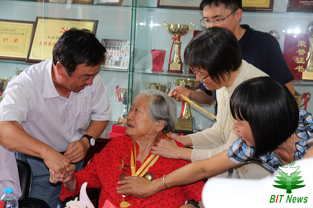 92岁的文星同志坚持从病榻中来到座谈会现场。她的女儿代表老同志家属发言,她回顾了文星老人参与抗战的经历,谈到了父辈身上体现出的抗战精神对子孙的影响。她对ob真人竞猜在这样一个纪念胜利的日子里举行座谈会充满感激之情,感谢学校领导对抗战离休干部们的关心。