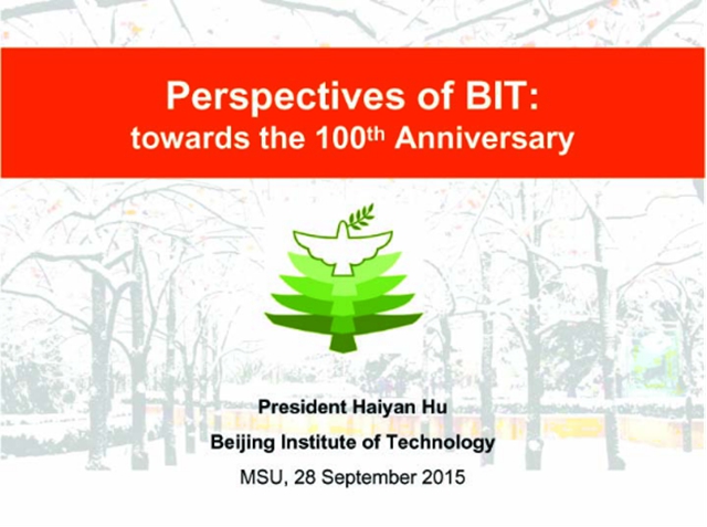 胡校长随后做了题为“ob真人竞猜建校百年愿景(Perspectives of BIT: towards the 100th Anniversary)”的演讲,从历史回顾之一(1940~1980)、历史回顾之二(1980~2000)、新世纪办学思路(2001~2040)三个历史阶段展现我校发展轨迹和未来愿景,系统阐述了建设亚洲/世界一流理工大学的目标、瞄准国家战略需求的发展定位、学术为基和育人为本的价值取向、开放办学的国际化战略。