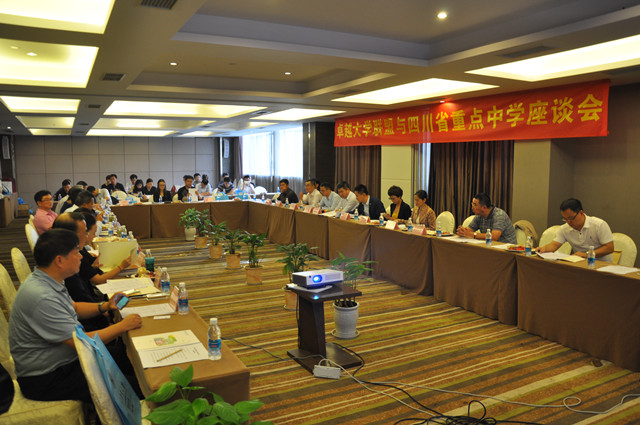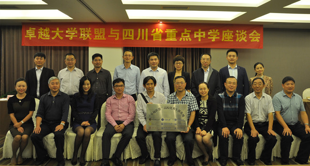 10月15日下午,卓越大学联盟各高校招生负责人分别向成都石室中学、成都树德中学、成都第七中学、成都七中嘉祥外国语学校、成都市第八中学、成都华阳中学、绵阳中学、四川省南充高级中学、达州市第一中学和四川省大竹中学10所四川省重点中学校长介绍了各高校基本情况及近年在四川省的招生录取情况,听取了四川省优质教育促进会有关 “高中大学衔接特色课程”的成果展示,并与各重点中学校长在建立招生宣传长效机制、改进自主招生评价方法等方面进行了深入探讨。会后,卓越大学联盟为这10所四川省重点中学分别授予了“卓越大学联盟优秀生源基地”的牌匾。此次会议为卓越大学联盟各高校与四川省教育考试院、以及重点中学建立更加广泛的联系,开展更加全面、深入的交流和合作奠定了基础。