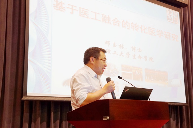 ob真人生命学院院长邓玉林教授作了“基于医工融合的转化医学研究”,介绍了学校生命学院近年来在生物技术方面取得的论文、专利等研究成果以及成果转化和国际合作情况,并提出了成立生命研究成果孵化基地的设想。