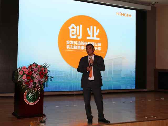 表彰会后,袁志敏校友与在座同学分享了自己创新创业的历程,他回顾了自己创建金发科技公司的艰辛,在不断的改革创新推动下,公司不断发展壮大,在世界新材料领域占据了重要地位。他鼓励在座的同学们坚持自己的梦想,不畏艰难,勇往直前。