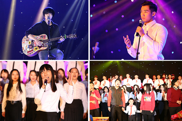 讲座结束后晚会正式开始。演出由张溥博小朋友领唱的合唱《you raise me up》开场,激情的演唱激发了观众们的热情。活力四射的歌舞《what makes you beautiful》点燃了全场的气氛。全体学生演绎的《we are the world》将晚会推向一个高潮。ob真人舞团的舞蹈《Dont stop the music》惊艳全场。林堃等同学的摇滚歌剧《波西尼亚狂想曲》让观众们感受到了摇滚乐的激情。