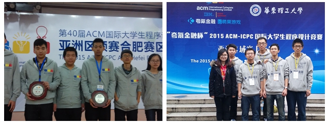 2015年10月17日至18日,2015年首届CCPC(China Collegiate Programming Contest)中国大学生程序设计竞赛在南阳理工学院举行。因为是首届比赛,所以各大名校如清华大学、北京大学、浙江大学、上海交通大学、中山大学纷纷派出最强阵容,共有134所高校的245支代表队参加。我校ACM集训队BIT_HolyHigh(计算机学院商占仝、信息与电子学院李沛奇和李子豪)在比赛中稳扎稳打,凭借强大的实力,在我校派出的四支队伍中排名第一,获得了一枚银牌。在接下来的国际大学生程序设计竞赛亚洲区比赛中,BIT_HolyHigh队还获得了由东北大学承办的沈阳赛站和由上海大学承办的东大陆赛站的银牌以及由北京大学承办的北京赛站的铜牌。