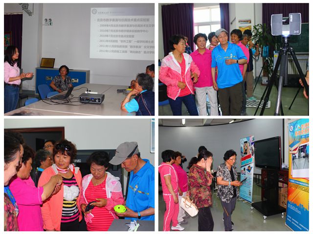 5月17日下午,来自景山街道社区,隆福寺社区,蒲黄榆社区等近50名市民走进数字表演与仿真实验室。首先黄天羽老师通过北京奥运会开闭幕式、国庆阅兵60周年联欢晚会、2010-2016年春节联欢晚会及世界反法西斯胜利70周年阅兵式现场等大型活动的仿真模拟,生动详实的讲解了我校数字媒体技术目前的发展应用。随后实验室马老师就展厅内陈列的专业技术设备向参观人员进行了功能及使用方法上的讲解,让参观人员亲身体验镜头中的主持人,参与仿真实验,通过生动的情景再现,体验到了科技与日常生活的紧密联系。