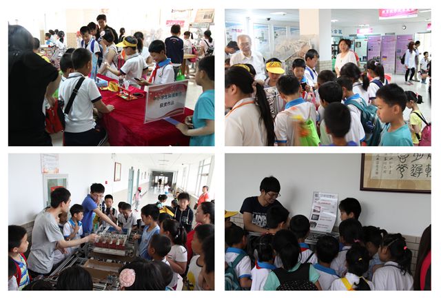 5月21日上午,ob真人竞猜光电创新教育实验基地迎来了京瑞学校的近百名小学生。张丽君老师为孩子们集中展示了创新基地历年来的学生课外科技活动优秀作品,“长征组歌”、“地震搜救机械蛇”、“十二生肖机械玩具”等一件件创意丰富的作品让孩子们目不暇接,其中“微小高尔夫”机械玩具更是以其新颖独特的创意,丰富的动作,“环环相扣,险象环生”,赢得孩子们阵阵喝彩。随后,孩子们来到创新基地实验室和大厅,观摩基地大学生、国际大学生以及中小学生的课外科技活动作品。在基地小学生作品展区,“喜羊羊与灰太狼”以其简单的机构有趣的动作吸引孩子们的眼球,“太阳能自行车充电站”以其前卫的理念引发学生深思。