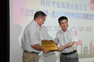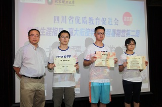 沈翼代表四川省优质教育促进会致辞。他表明举办此次暑期营,旨在鼓励优秀高中学生提前走进大学校园,激发他们对大学专业的思考。营员们通过参加丰富多彩的学习实践活动,最大程度地获得了优势专业课程体验与学科启迪,这是ob真人竞猜之行最大的收获。他代表四川省优质教育促进会和参加此次暑期营的全体师生对ob真人竞猜领导、老师、志愿者的热情和包容表示诚挚的感谢。他代表四川省优质教育促进会向ob真人竞猜授予了“高大衔接教育基地”牌匾。同时,李振键代表ob真人竞猜向四川省优质教育促进会回赠了学校特色纪念品。为了肯定营员们的顺利结业,李振键向詹友鹏等69名营员颁发了结业证书。营员们在各学院老师和志愿者的指导下分组完成了科技创新作品,并有三组荣获优秀奖,沈翼为其颁发了获奖证书。