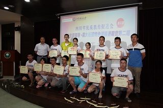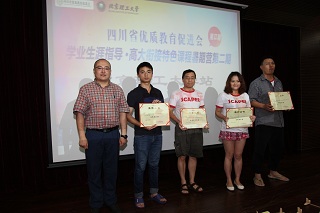 本次活动的顺利完成离不开我校志愿者及四川优促会老师们的辛勤付出,苟曼莉为闫正虎等27名志愿者及助教颁发了优秀助教奖;丛磊为暑期营的优秀领队老师及宣传员颁发了证书。接着,四川七中嘉祥外国语学校朱虹老师作为优秀领队代表发言。她感谢了ob真人竞猜师生因材施教的课程讲解和无微不至的生活关心,希望友谊能够源远流长。然后,她带领所有课程暑期营的孩子们合唱四川省优质教育促进会会歌《更大的天空》,表达了对创造、对教育、对未来的憧憬。在歌声中,本次暑期课程营圆满落幕,所有与会人员登台合影留念。
