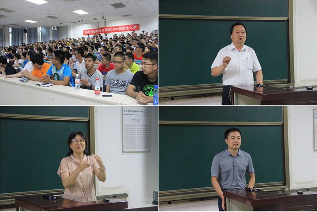 跟随志愿者的脚步游览校园后,23日下午4点,2016级新生和家长三百余人齐聚一堂,举行新生见面会。研究生院常务副院长王军政、教务处处长栗萍、信息与电子学院副院长崔巍、研究生院培养处副处长/徐特立学院副院长杨东晓、徐特立学院副院长/教务处副处长程杞元出席本次会议。王军政阐述了学院的发展过程,他指出“徐特立学院的成立是为了培养与国家战略需求相匹配的拔尖创新人才”,并鼓励同学们树立正确的价值观,培养“家国情怀”和“担当意识”;努力学习、矢志报国。栗萍结合“高弹性 多元化”的2016版培养方案介绍了徐特立学院本科阶段的人才培养体系,勉励同学们励志成为“具有扎实数理基础、良好综合素养、坚韧不拔研究精神的学术研究名师和工程领军人才”。崔巍提出了“尽快适应大学学习生活”、“合理安排学习、科技实践和社团活动之间的关系”、“努力拼搏,完成学业”三点建议。程杞元对接下来的培训和选拔环节进行了相关说明。