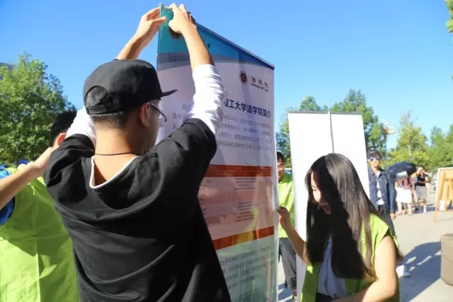 矗立在迎新现场两侧的学院介绍让新生及家长更快地认识了解我们学院的情况及特色,“爱上法学院”“无法不爱”已经豁然萦绕在新生的脑海中。