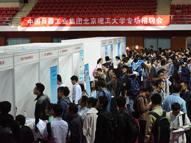 2016年9月28日,我校在体育馆主馆举办了中国兵器工业集团专场招聘会。此次招聘会是中国兵器工业集团在京举办校园招聘会中参会单位最多的一场,中国兵器工业规划研究院、中国兵器工业标准化研究所、中国北方工业公司、中国北方车辆研究所、内蒙古第一机械集团有限责任公司等52家单位前来参会,吸引了近2000名校内外学生到场应聘。