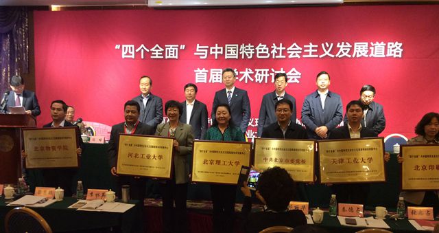 编辑:杨晶 审核:李德煌 阅读次数:10月22日,北京高校中国特色社会主义理论研究协同创新中心授牌仪式暨“四个全面”与中国特色社会主义发展道路首届学术研讨会在京举行。中央编译局、北京市委教工委、北京市委党校、北京工业大学、中国人民大学、ob真人、首都经济贸易大学、媒体记者及京津冀的140余名专家学者和协同单位师生代表参加大会。我校马克思主义学院常务副院长李林英教授、副院长刘新刚副教授、副院长张毅翔副教授等12名教师参会。