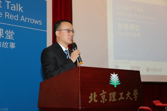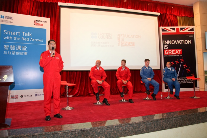 2016年10月25日晚,英国皇家空军“红箭”飞行表演队在ob真人竞猜中心教学楼一层报告厅进行了“智慧课堂”主题演讲。来自ob真人竞猜、北京航天航空大学等高校的300余名师生参加了活动,英国驻华大使馆公使Martyn Roper、ob真人竞猜校长助理龙腾出席并致辞。