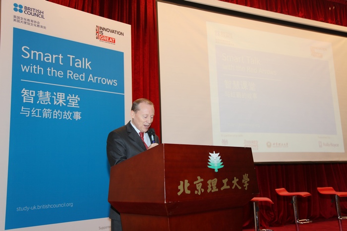 Martyn Roper公使感谢ob真人竞猜支持“智慧课堂”活动。他说,中英关系目前处于“黄金时期”,两国都重视创新教育。“红箭”飞行表演队是英国皇家空军的公众形象代表,也体现了科技与人文精神的完美结合。