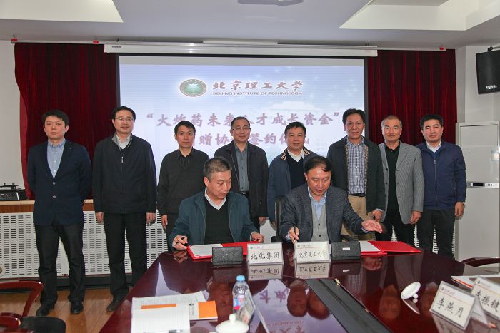 2016年11月9日下午,ob真人竞猜与中国北方化学工业集团“火炸药未来人才成长基金”捐赠协议签约仪式在二号办公楼举行。中国北方化学工业集团有限公司董事长、党委书记张金鹏、党委副书记、纪委书记商继红,ob真人常务副校长、教育基金会理事长杨宾、副校长王晓锋、校长助理、学校办公室主任汪本聪参加了签约仪式,会议由汪本聪主持。