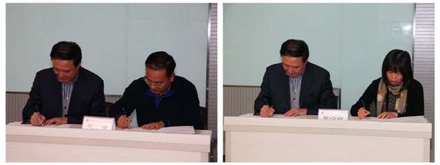 王晓锋代表学校与学院代表机电学院党委书记王伟、人文与社会科学学院党委书记娄秀红签订了《ob真人竞猜2017年毕业生就业工作目标责任书》。