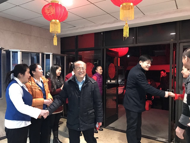 集团负责人一行先后来到延园餐厅、理工招待所、家属区监控室、零修中心备班室、能源中心锅炉房、商业中心客运部、学生公寓女子小区、能源中心东总配电室。每到一处,集团领导详细询问运行情况、与值守人员亲切交谈,并送上新年美好的祝福,四九寒冬,暖意融融,到处洋溢着春节喜庆的氛围。