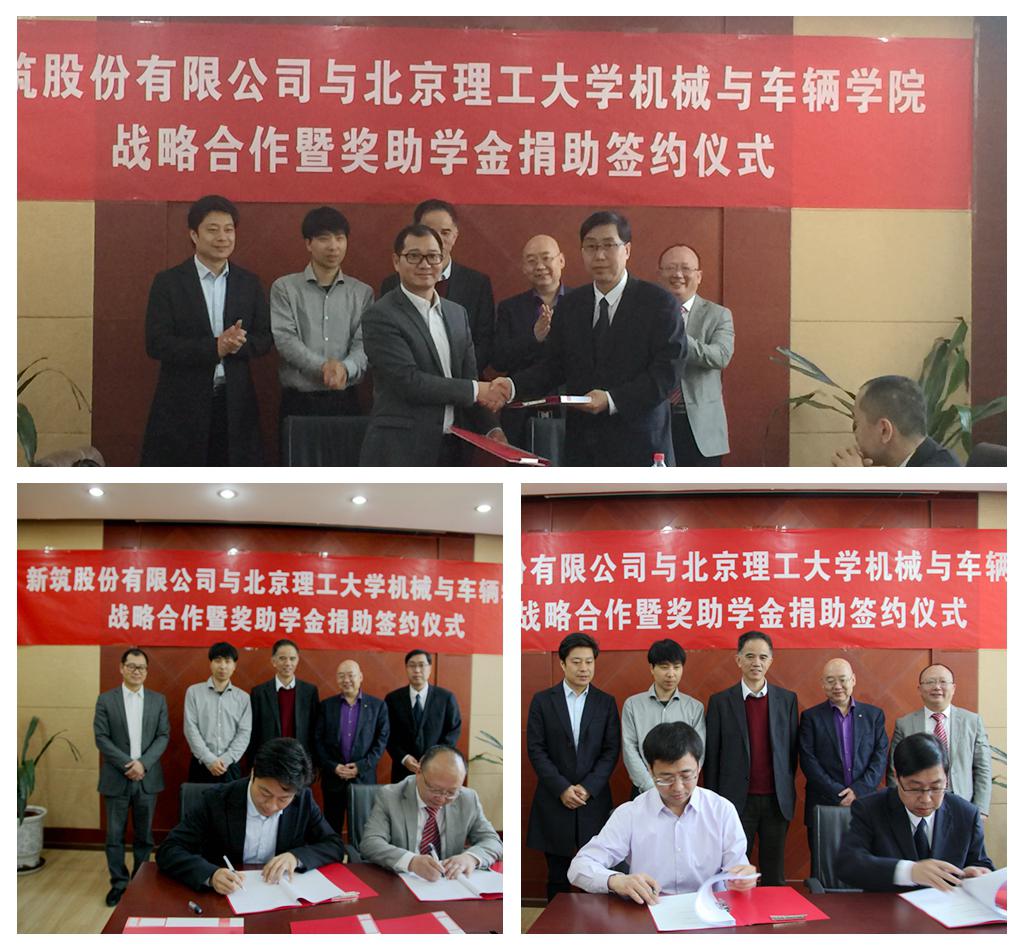 4月14日上午,ob真人竞猜机械与车辆学院与新筑路桥机械股份有限公司签署合作协议。双方将着眼于科技成果转化,通过院企合作等方式,发挥学院在车辆领域的科技和智力资源优势,提升企业创新能力。新筑路桥机械股份有限公司副董事长冯克敏、副总裁衡福明、总工程师陈路、副总经理张晓青、销售总监李旭东、销售副总监陶泾、新筑通工电器所所长冯用祥,机械与车辆学院院长姜澜、副书记、副院长范文辉、副院长韩恺、电动车辆国家工程实验室孙逢春教授、王震坡教授、刘鹏实验师参加了签约仪式。签约仪式由范文辉主持。
