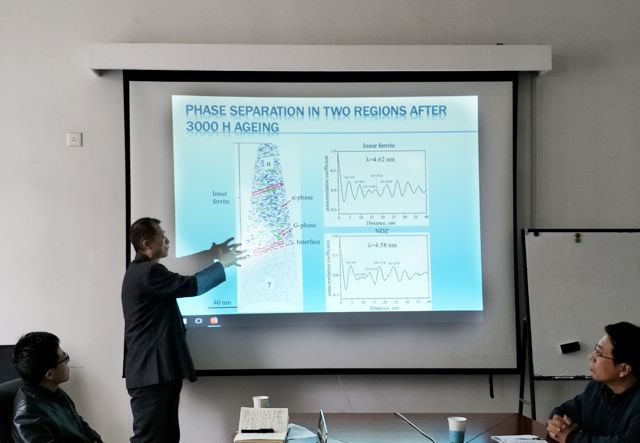 原子探针技术正在发展成为材料微观结构和成分研究的重要分析手段。沙刚教授作为原子探针三维分析技术应用领域的国际知名专家,通过将原子探针、其它先进实验分析技术和计算机模拟技术相结合,实现了对材料原子尺度和成分信息的综合精准把握,促进了中国原子探针技术应用的发展和研究。沙教授概述该分析技术的基本工作原理和其应用发展趋势,例举了该技术在双相不锈钢中温脆机理研究上最新应用。讲座激起与会师生的浓厚兴趣,讲座后大家展开了热烈的讨论,与会师生受益匪浅。