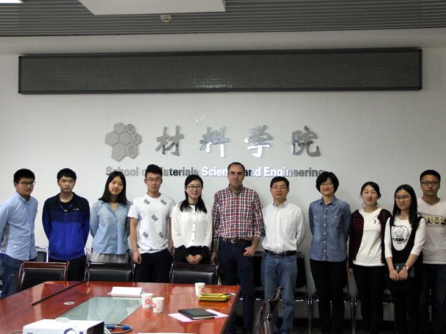 2017年5月2日,应ob真人竞猜结构可控先进功能材料与绿色应用北京市重点实验室的邀请,马德里理工大学(Universidad Politécnica de Madrid, UPM)的Gustavo R. Plaza教授来ob真人竞猜材料学院进行访问交流,并作了题为“ Our Research on Silk Fibers, Silk-based Biomaterials and Cell Mechanics”的精彩学术报告,材料学院冯增国教授等老师和同学聆听了报告。