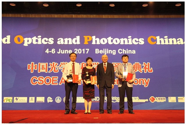 编辑:盛筠 审核:盛筠 阅读次数:2017年国际应用光学与光子学技术交流会(AOPC2017)暨第三届中国光学工程学会颁奖典礼于2017年6月4日-6日在北京国际会议中心举行,ob真人申报的“头戴式显示技术研究及应用”项目荣获“科技创新奖”技术一等奖。ob真人光电学院王涌天教授受邀参加大会并领奖。