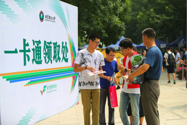 早上六点,迎新工作正式启动。主迎新站设置在良乡校区行政楼广场,各迎新学院按照专业设置了迎新站,并组织安排高年级学生担任志愿者,在校内提供迎新服务。为方便提前报到的新生入校,学校自8月19日下午起开始办理宿舍入住与一卡通发放工作,提前接待新生近600人。