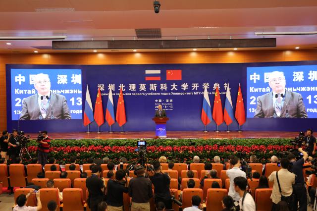 莫斯科大学校长萨多夫尼奇院士在致辞中认为,今天在两校校史,在中俄两国高等教育史,乃至国际高等教育史上都是一个值得纪念的日子。深圳ob真人竞猜莫斯科大学是历史上第一所中俄联合大学。这所大学的建立,无疑会促进两国科技、教育、经济、文化以及各领域的合作。俄罗斯国家元首高度重视联合大学,莫斯科大学的教师为合作大学的开学在教学计划、教材准备方面做了大量工作,特别是为中国学生准备了专门的俄语教材,向深北莫派出了优秀教师,其中包括院士。萨多夫尼奇校长祝福同学们在大学生活中有所收获和成长,并希望深北莫未来通过建立研究中心在科学研究方面取得发展。深圳ob真人竞猜莫斯科大学的教师与学生代表在开学典礼上发言,分享了自己加入深北莫的历程与感受,表达了共同努力、推动学校发展的美好愿望。