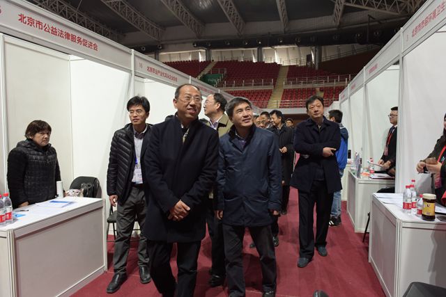 北京社会工作委员会委员、北京市社会建设工作办公室副主任卢建在招生就业工作处处长李振键的陪同下视察招聘会现场。