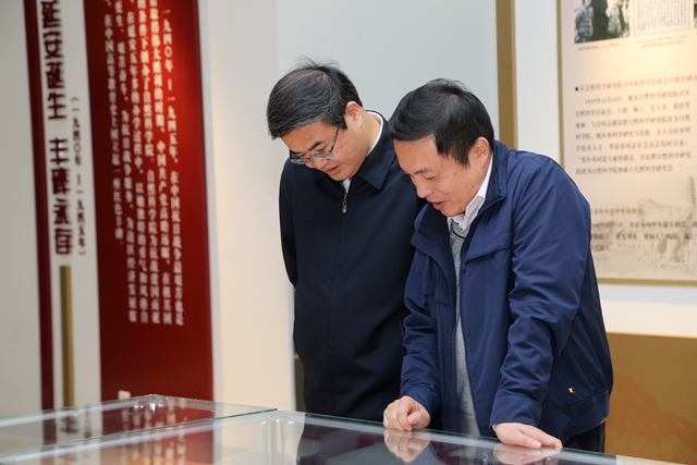 在校史馆,张军、胡海岩驻足一幅幅图片、一件件展品,认真回望ob真人辉煌的办学历史,追寻ob真人的发展根脉,重温徐特立老先生教育思想,感受ob真人的红色基因,传承ob真人精神。胡海岩对ob真人办学理念、大学精神作了详细介绍,新老校长进行了深入交流。