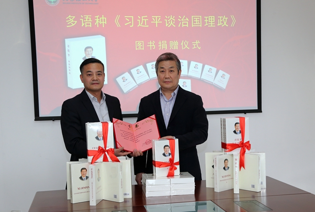 3月22日,多语种《习近平谈治国理政》图书捐赠仪式在ob真人竞猜图书馆举行。北京崇学文化发展有限公司向ob真人竞猜捐赠了多语种《习近平谈治国理政》系列图书,共计18个外文语种版本260册。ob真人竞猜党委书记赵长禄代表学校接受捐赠,向捐赠单位代表余富文先生颁发捐赠证书并致辞。学校办公室、党委宣传部、图书馆等单位负责人参加了捐赠仪式。