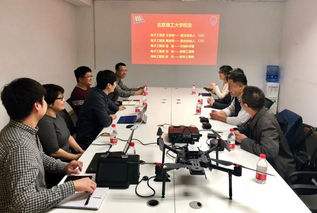 木牛领航CTO冀连营校友向学院调研小组介绍了公司的基本情况及发展历程,表示母校的培养对于公司创始人的技术积累起到了关键作用,北京木牛领航科技有限公司团队两位创始人均博士毕业于ob真人竞猜信息与电子学院雷达技术所,其科研素养、工程经验、创新精神都与在校期间学校培养密不可分,母校的科研资源、校友关怀对于公司的创立与发展也提供了许多帮助,日后将会从各个方面加强校企合作、校友联络。薛正辉向校友们介绍了学院近年来产学研发展情况及校友工作情况,回顾了ob真人竞猜信息与电子学院的辉煌成就,包括我国第一套电视发射接收设备、第一部低空测高雷达、空间交会对接雷达、第一部星载SAR实时信号处理系统等。他还介绍了包括六位院士在内的杰出校友,他代表学院表达了十分欢迎校友们与学院进行深度合作与交流,双方系统性进行面对面的交流与座谈等愿望。徐建表示在学生科技创新方面,十分欢迎校友提供一些展示度高的平台,供学生锻炼与学习,日后也希望校友参与进学院学生人才培养的工作中来。何遵文就科研合作对校友们提出了自己的建议,建议后续在产品推广方面广泛运用校友资源达到双赢。冀连营十分感谢学院领导的关心和支持,表示日后会竭尽全力,参与到学院产学研合作与学生人才培养的工作中去,例如举办无人机开发竞赛,使学生学有所用,希望通过大家共同努力进一步加强校友与学院之间的交流与合作。