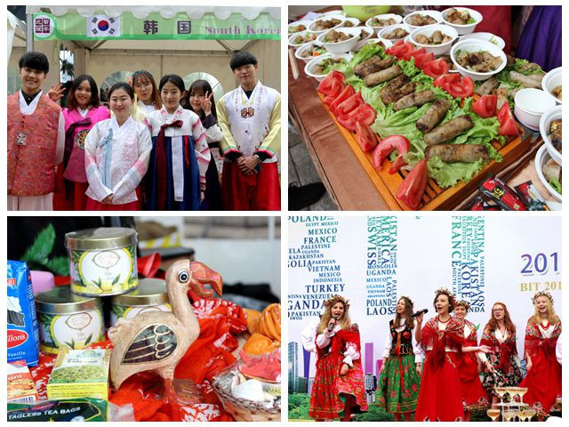 在舞台区,各国准备的文艺表演赢得观众满场喝彩。中国功夫气势恢宏;金发碧眼的俄罗斯、波兰姑娘们为我们演绎了一场温婉动人的江南伞舞;南非的学生带来了热情奔放的舞蹈,让观众们一下子梦回非洲;还有来自尼日利亚、哈萨克斯坦、巴拿马等国家的留学生组成的BIT International合唱团,动听的演唱让观众如痴如醉。拍照区一个个生动立体的卡通形象吸引了大小观众纷纷前来合影留念。不同国度、不同民族的国际文化元素在这里精彩绽放、交融升华!