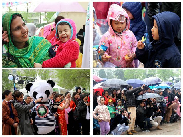 副校长梅宏院士、中国科学院外籍院士福田敏男教授、留学生中心负责人和留学生代表为国际文化节共启盛幕,活动现场被热情高涨的师生及小朋友们围得水泄不通,一把把在雨中撑开的“伞花”成了靓丽的风景线,气氛步入高潮。